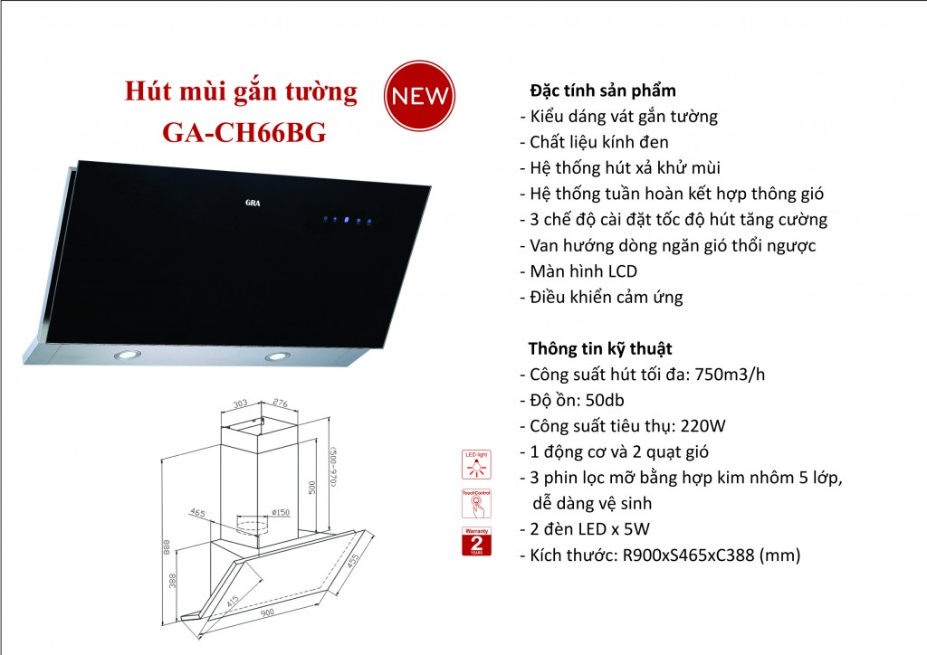 Hút mùi gắn tường GA-CH66BG